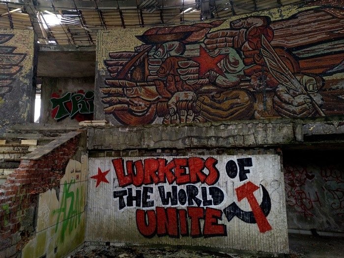 Todo ello ante la atenta mirada de los líderes del movimiento tanto búlgaros como soviéticos que aún se mantienen bajo algunos grafitis como testigos del tiempo y la degradación de este espacio.