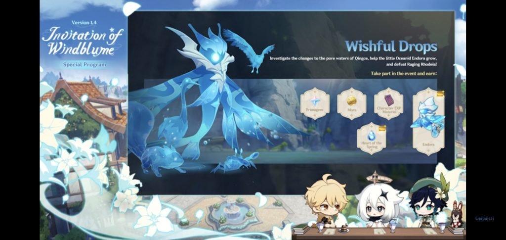 Coincidiendo con el lanzamiento del nuevo parche, dará comienzo el Festival de las Flores del Viento en Monstad. Este festival conmemora la alegría, el amor y la libertad, y se celebra en honor a Barbatos, el Arconte del Viento.