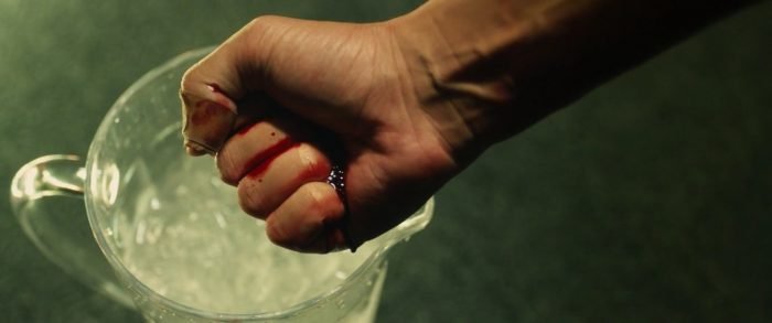 A partir de este momento, nos encontramos por completo en territorio del género de acción, y todas las cosas que acontecen así lo demuestran. También en nuestro anterior artículo, introdujimos ya el concepto de que la acción tiene un componente narrativo que avanza la trama y los conflictos entre personajes de forma física; es decir, que cada golpe en realidad tiene un significado. El género de acción utiliza puñetazos y patadas para marcar momentos narrativos decisivos, giros argumentales que son enfatizados mediante una acción física. Whiplash eso lo entiende, y lo usa. Así, una vez que Andrew ha atravesado su particular punto de inflexión y se sienta de nuevo frente a la batería, comienza a tocar ante un incrédulo Fletcher, quien se acerca amenazante, solo para recibir un golpe de platillo en la cara. Chazelle ha utilizado un recurso elemental del género de acción: con este golpe nos hace saber que nos encontramos en el segundo acto de la batalla; ahora Andrew va a plantarle cara a Fletcher. Metafórica y literalmente, Andrew golpea a su contrincante. The game is on.